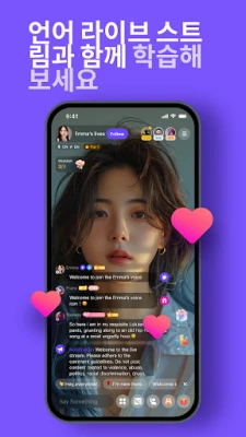 HelloTalk은 배움의 지평을 넓히는 다양한 콘텐츠로 가득합니다. 전문 외국어 호스트들이 진행하는 다채로운 글로벌 라이브스트림을 통해 언어에 대한 깊이 있는 통찰은 물론, 그들의 이국적인 일상을 엿볼 수 있습니다. 심지어 직접 무대에 올라 호스트와 일대일 영상 대화를 나누며 발음, 유창성, 그리고 자신감을 높일 수도 있습니다. 또한, '모멘츠' 기능을 통해 전 세계 학습자들의 삶, 문화, 그리고 배움에 대한 실시간 게시물을 탐색할 수 있습니다. 집에서 편안하게 새로운 관점을 발견하고, 다양한 문화적 관습을 이해하며, 전 세계와 연결되는 특별한 경험을 만끽하세요.